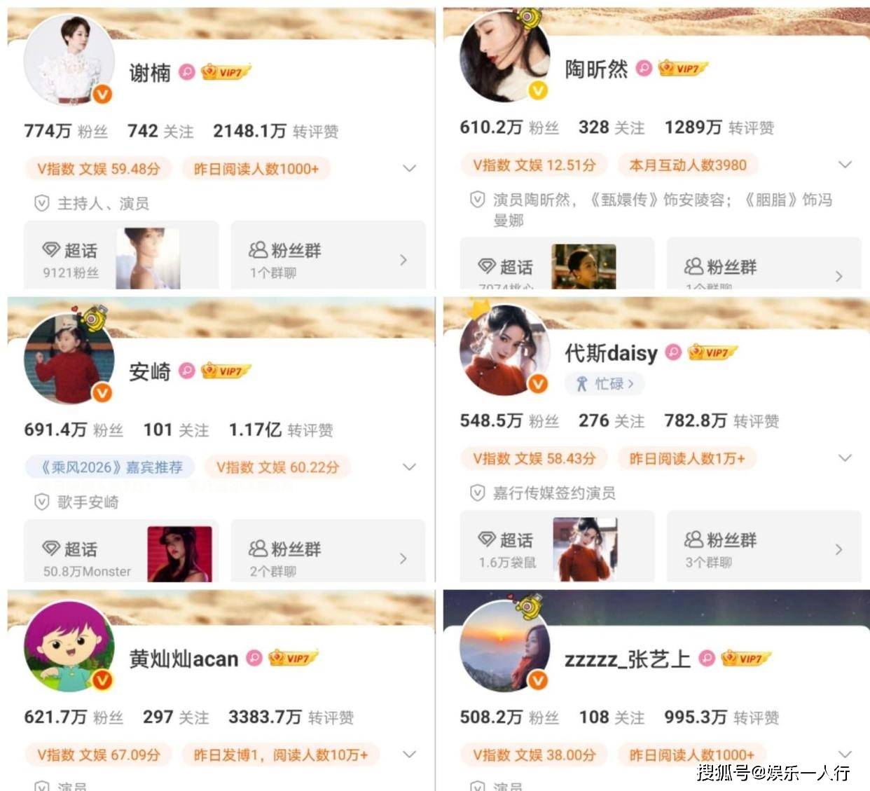 娱乐资讯原创 细盘浪姐7姐姐粉丝排名,断层第一却全网喊退赛!唐艺昕排第二,第1是近年争议最多的她