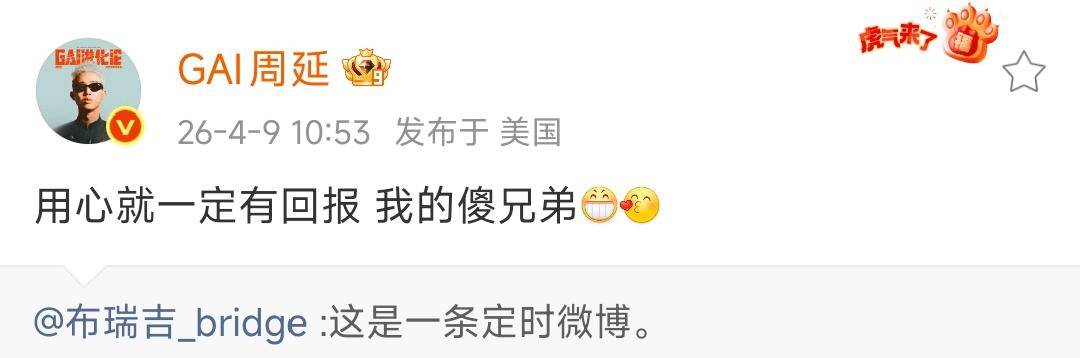 GAI也转发了布瑞吉发文,表示用心就一定有回报,我的傻兄弟。