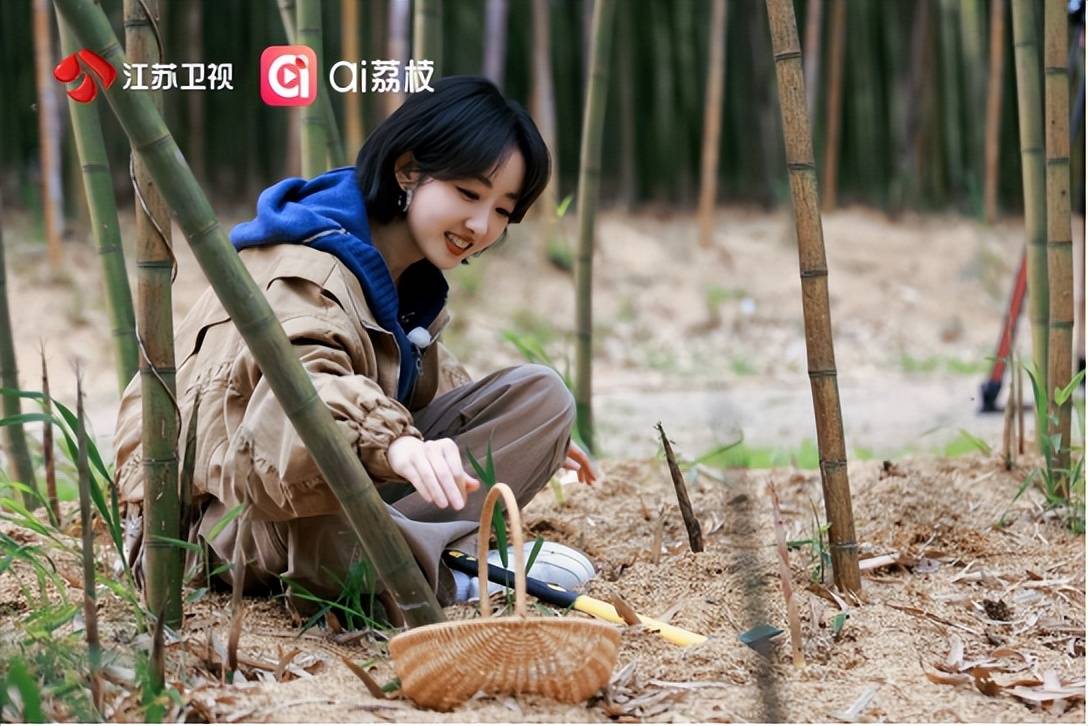第二站:竹林挖笋。高淳是鱼米之乡,春笋正当季。林允刚拿起工具就被草丛里的小虫子吓得惊呼,蒋梦婕和林晓干劲十足,专挑“大家伙”下手。黄英和林允跟在后面,专注得像在考古。挖笋大赛谁赢了?得看正片。